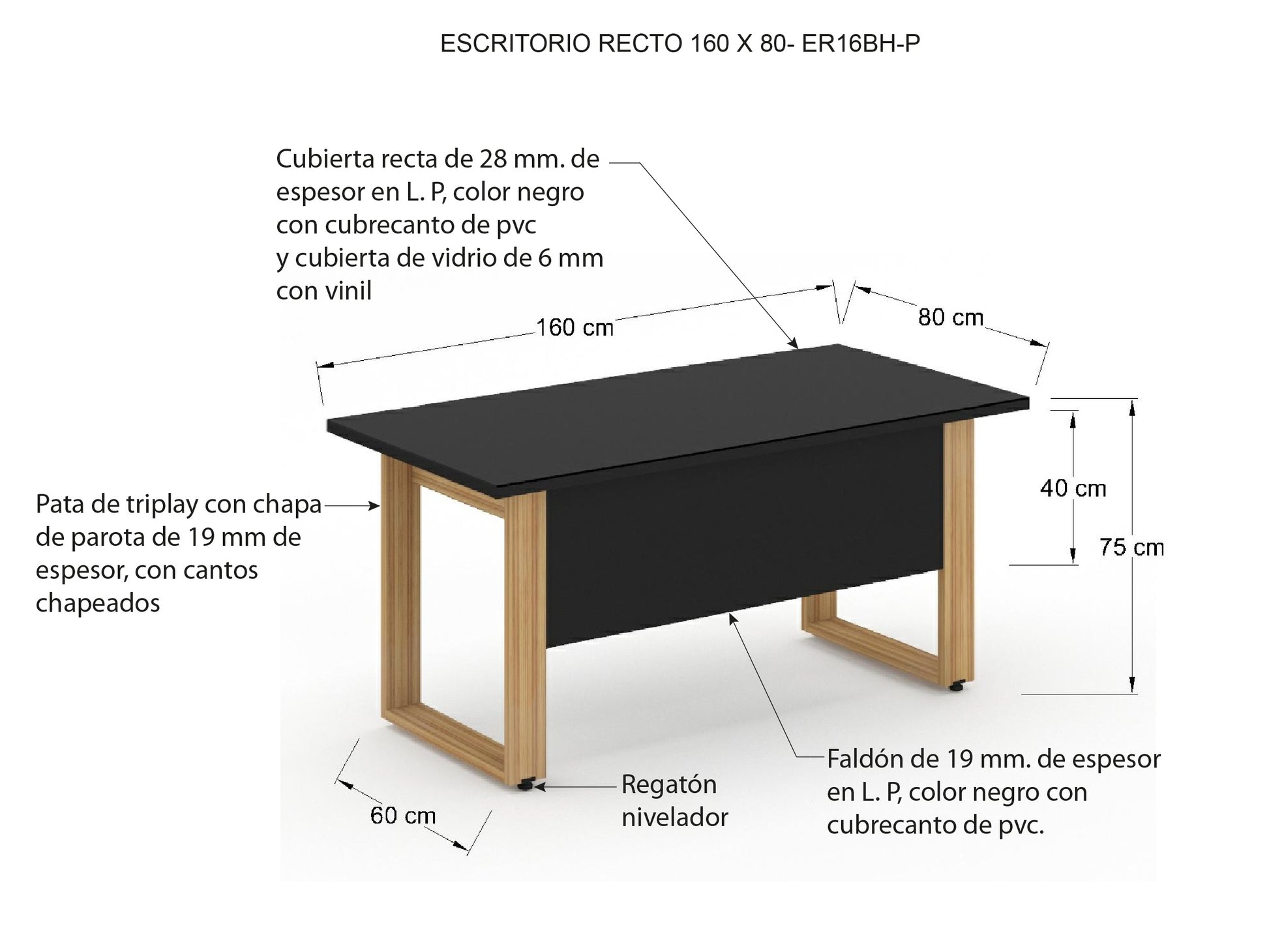 - Cubierta fabricada en L.P. 28mm color Negro con Cristal de 6mm color Negro.