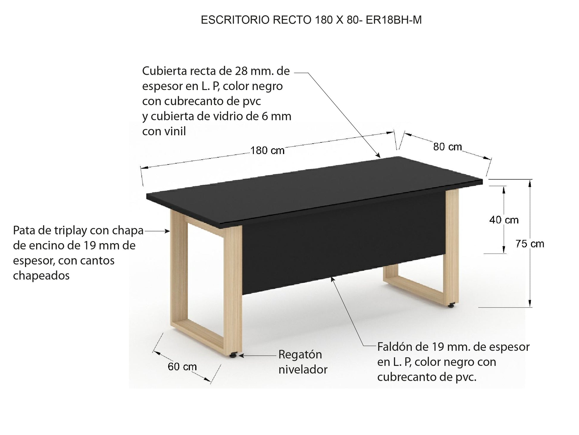 - Escritorio Recto Ejecutivo con Cubierta en Cristal.
