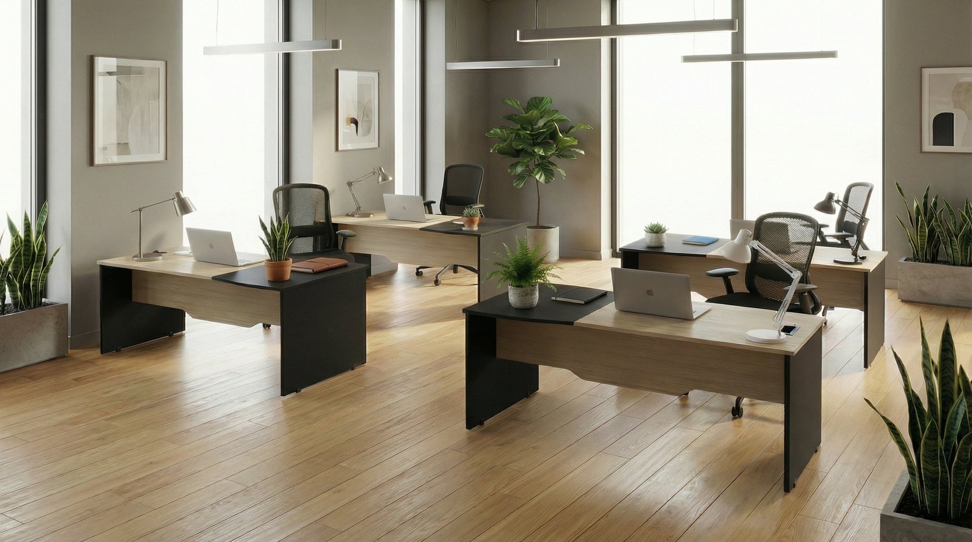 - Escritorio Ejecutivo fabricado en 2 tonos de L.P. generando un contraste único y elegante.