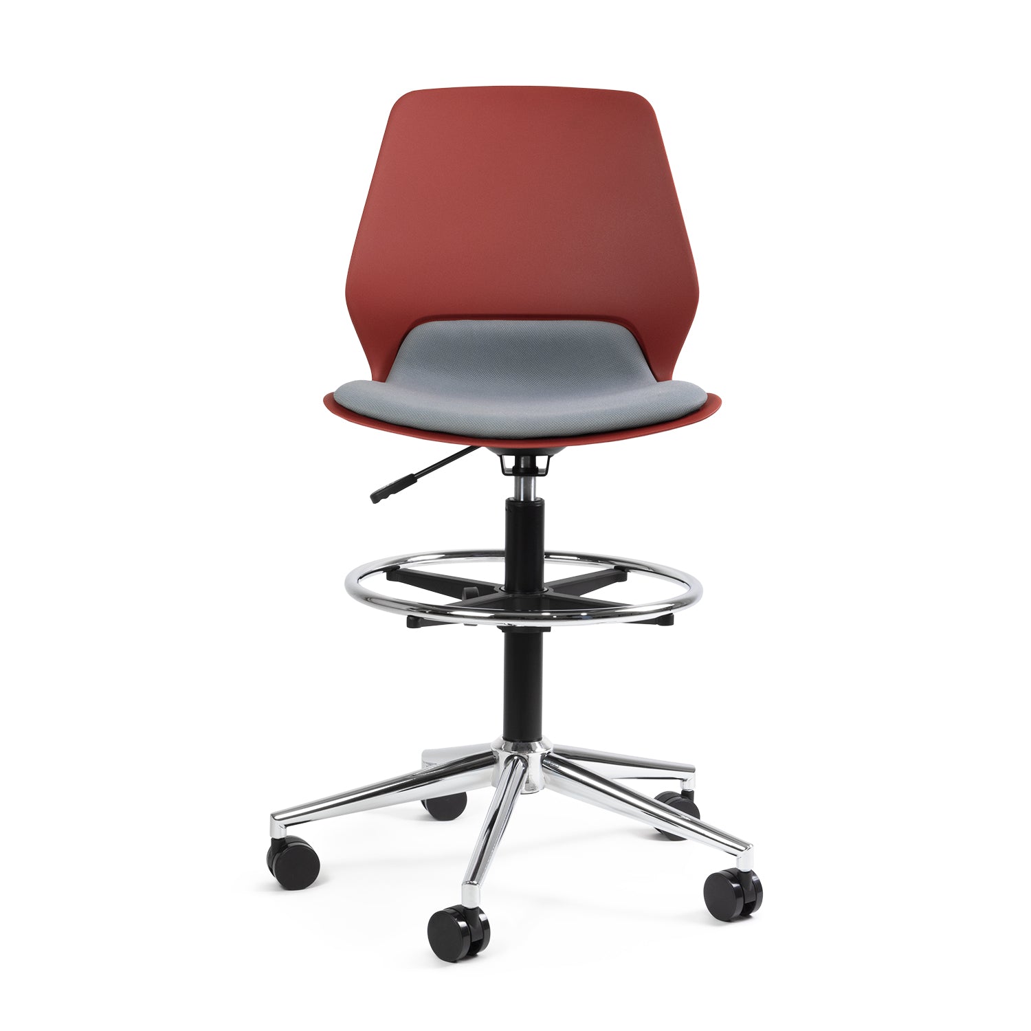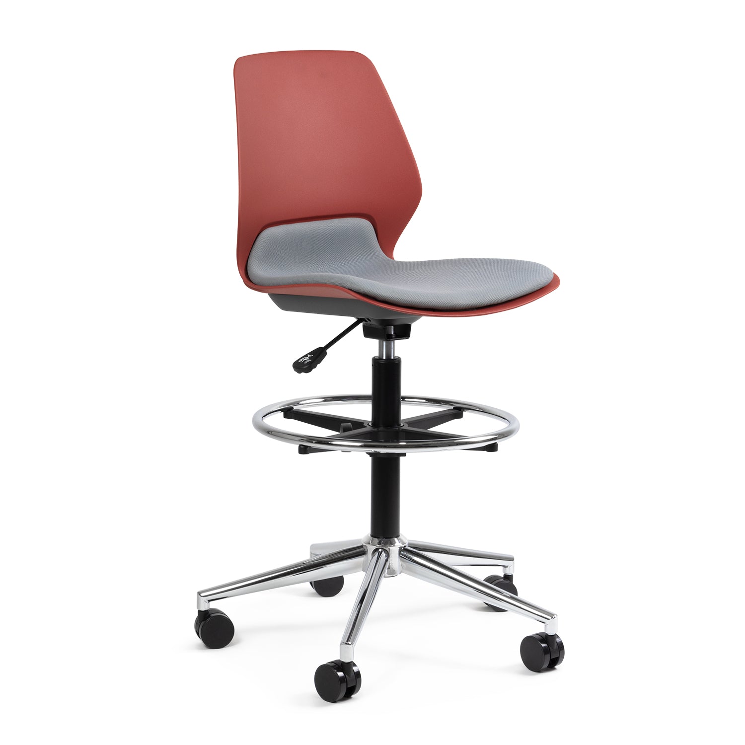 La Silla Cajera Kolbe Tapizada está diseñada para estaciones de trabajo en altura que requieren mayor confort sin perder resistencia.