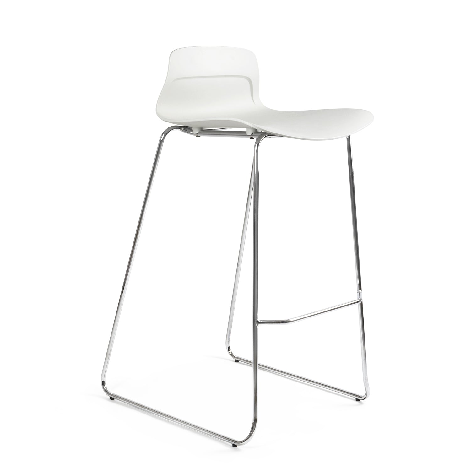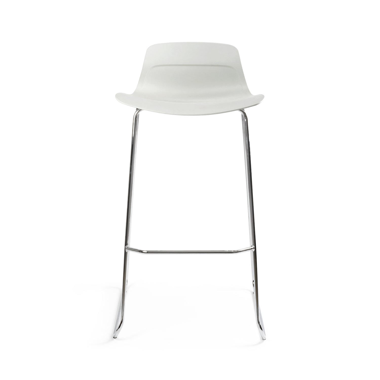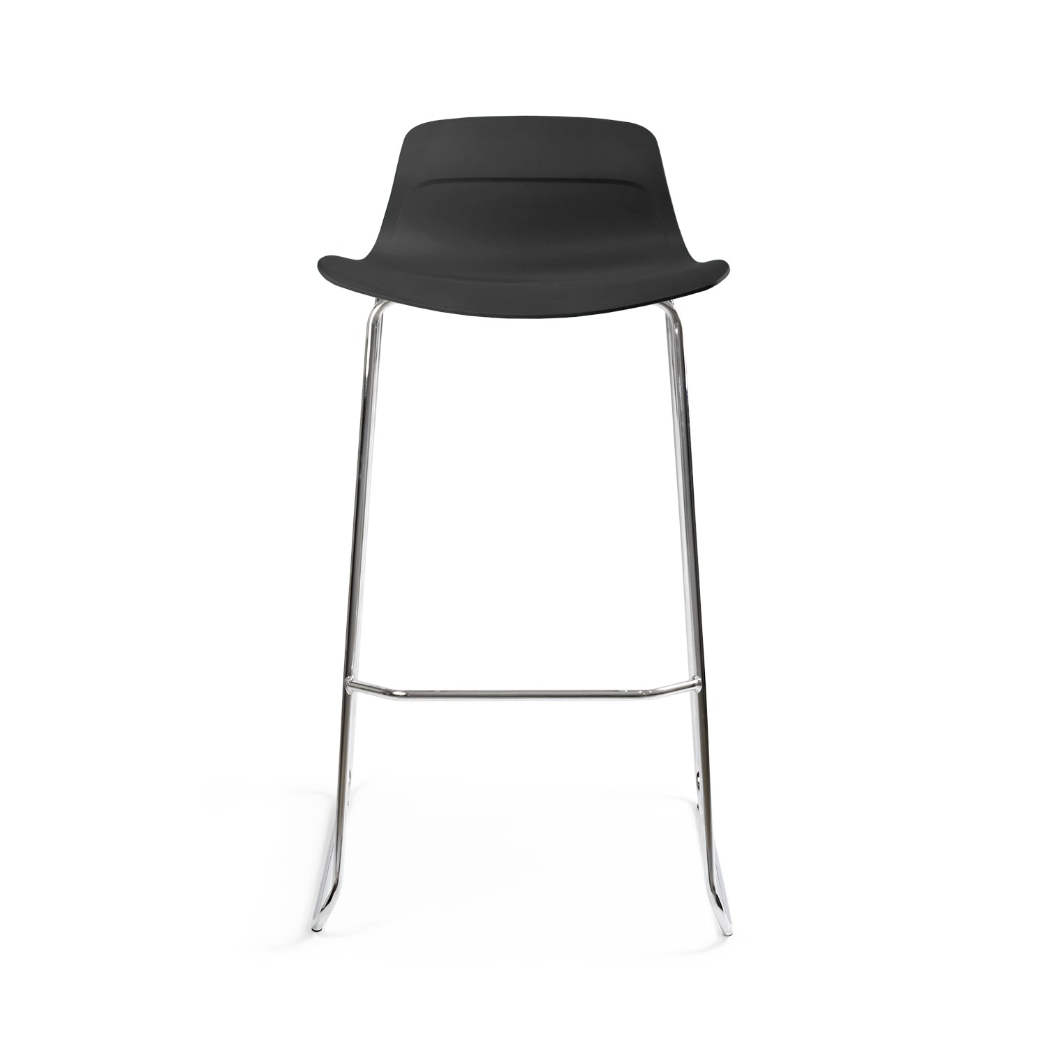 La base tipo trineo en acero cromado aporta estabilidad y una estética contemporánea ideal para proyectos contract y restaurantes.