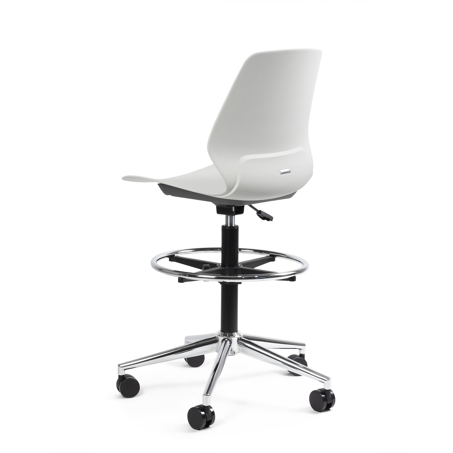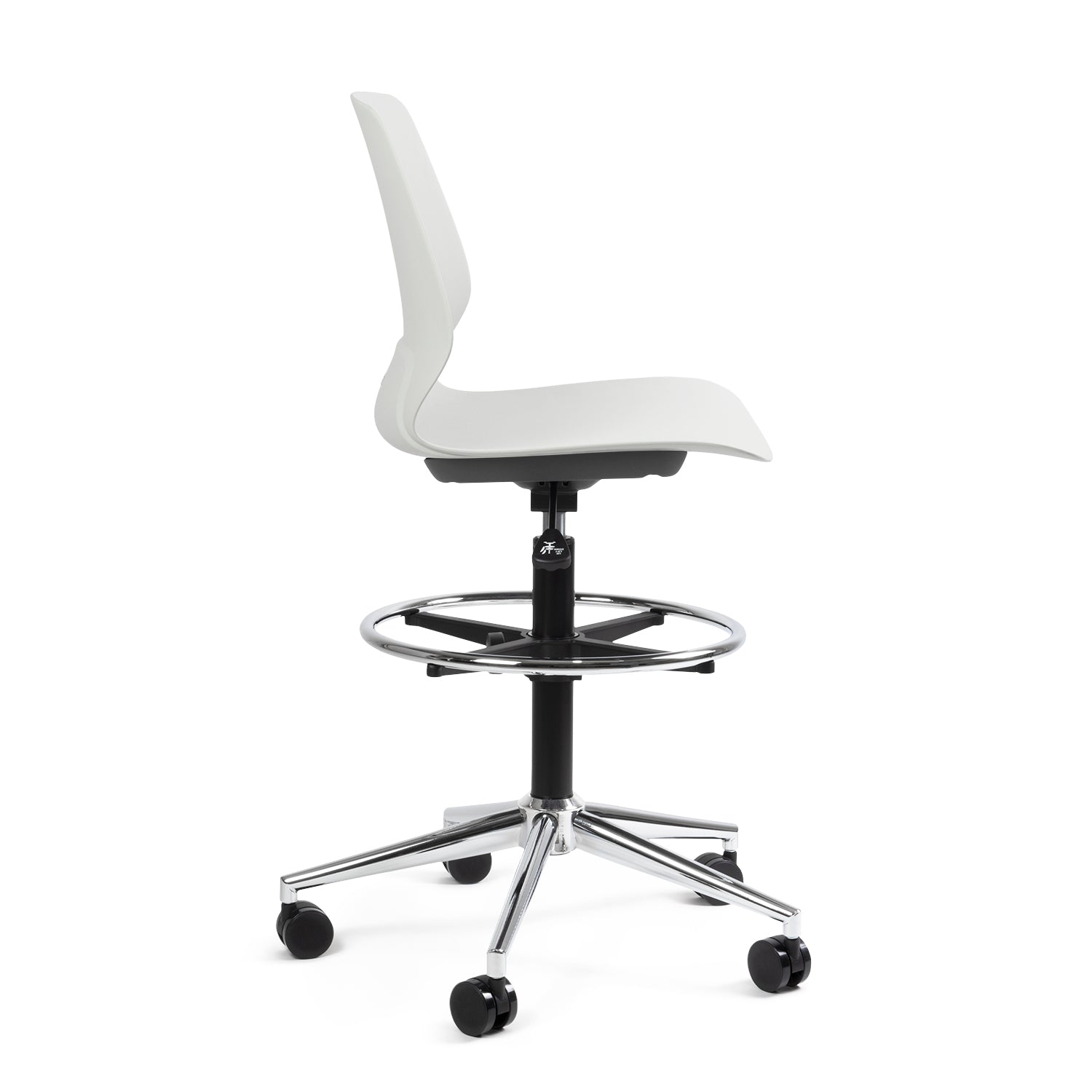 La Silla Cajera Kolbe con aro cromado está diseñada para estaciones de trabajo elevadas, barras de atención y áreas de caja que requieren movilidad y resistencia.