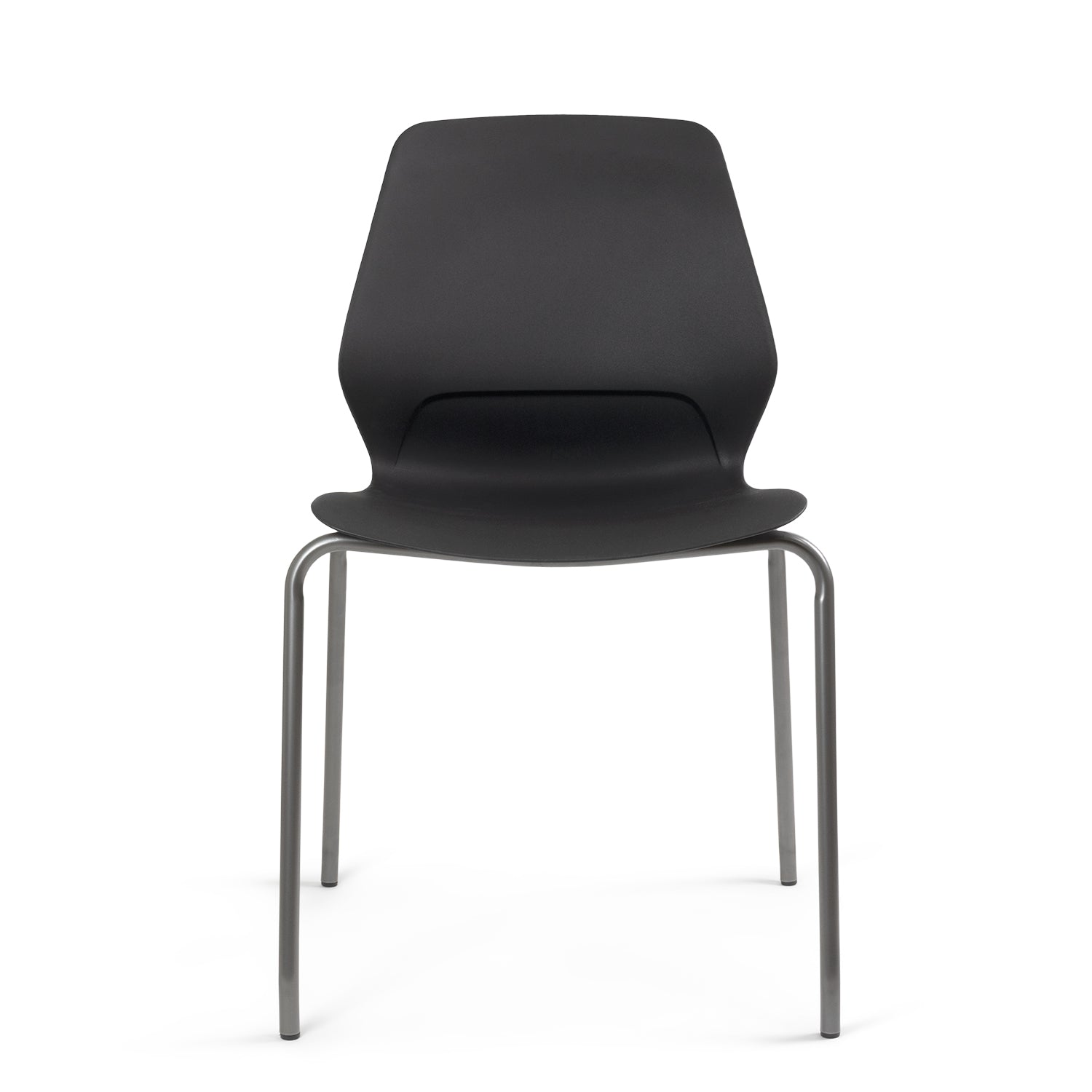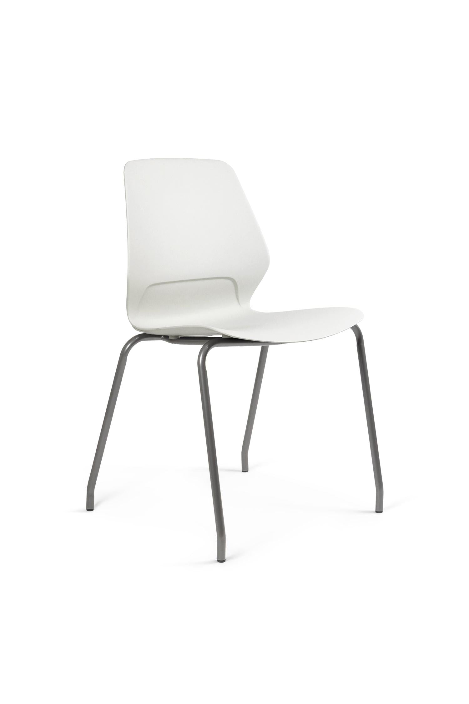Su asiento y respaldo en una sola pieza de polipropileno de alta resistencia ofrecen durabilidad y fácil mantenimiento, mientras que su base metálica con acabado en pintura gris electrostática aporta estabilidad y una estética sobria.